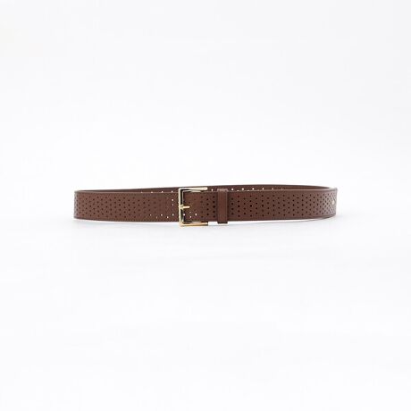 やわらかなスムースレザーを張り合わせ、全体に細かなパンチングを施したストレートベルトです。