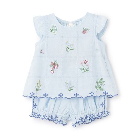 繊細な刺しゅうをほどこしたボタニカル柄のセットアップです。