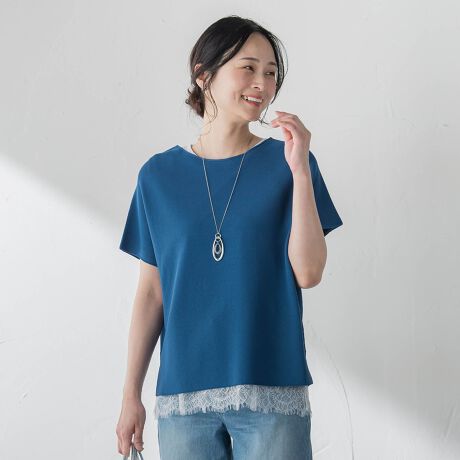 さらりとした肌触りのストレッチ素材を使用した、夏にうれしい万能ニット。