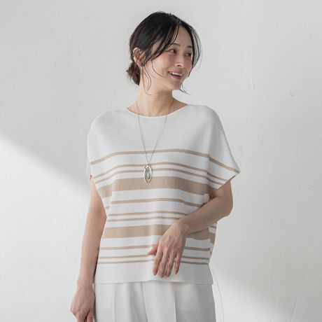 さらりとした肌触りのストレッチ素材を使用した、夏にうれしい万能ニット。