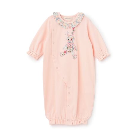 新生児期はドレス型、生後2、3ヵ月から股部分のボタンの留め方を変えてパンツ型で使用可能。
