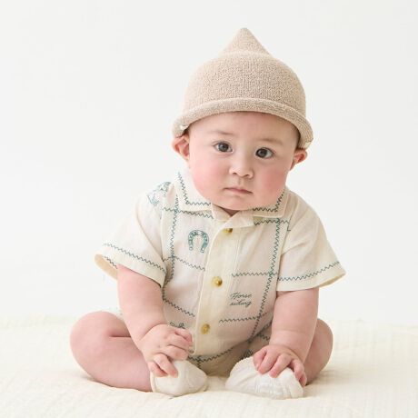 股部分にはスナップボタンがついているため、おむつ替えもスムーズに行えます。