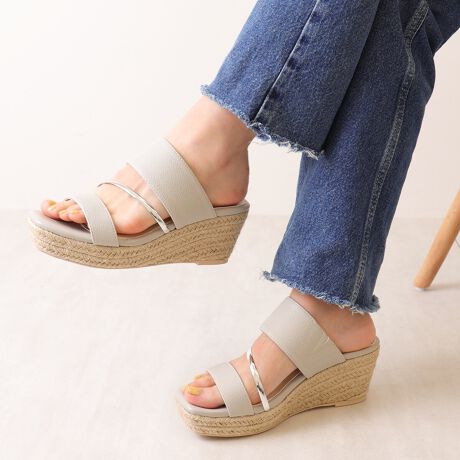 【26春夏新作】ダブルストラップ 厚底ジュートウェッジミュールサンダル