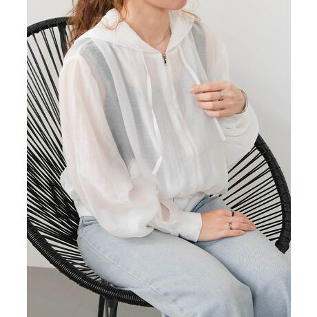 程よい透け感が魅力のシアーパーカーは、軽やかで柔らかな印象を与えてくれるアイテム。