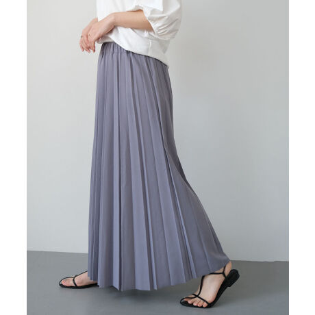 繊細なプリーツ加工が施されたロングスカートは、歩くたびにふんわりと揺れる女性らしいシルエットが魅力です。