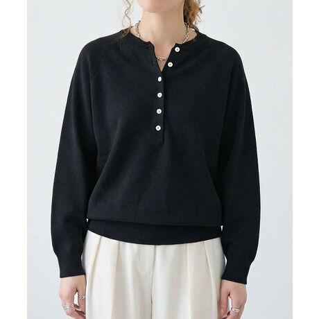 スウェットのようなラフな雰囲気を持ちながら、フロントのヘンリーネックがさりげないアクセントになるトップス。