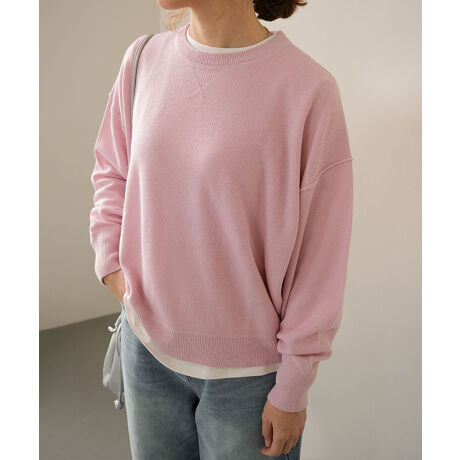スウェットのようなラフさを感じさせながらも、ニット素材で大人っぽく仕上げたトップス。