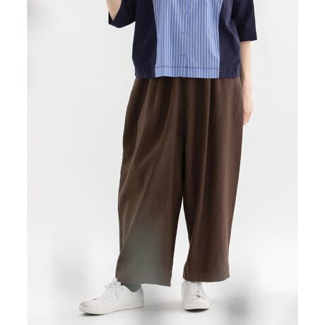 ふんわり丸く膨らんだくるぶし丈のパンツ。股上が深くリラックスしたゆるさがありながら、高い位置にボリューム感を持たせているのでバランス良く着こなせる人気のPommeパンツをさらにボリュームアップして丸みをプラス。しっかりとした厚さがあり、光沢とシャリ感が強い麻素材を使用。右後ろにスワンネームのワンポイント、ウエストはゴム仕様で内紐つき。両サイドポケットつき。