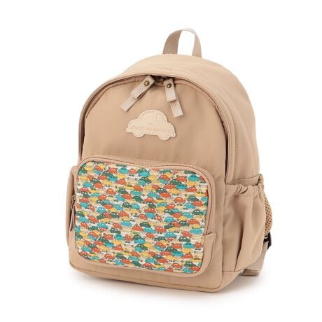 お出かけが楽しくなるようなクルマモチーフのリュックです。リバティファブリックスの総柄を使用したフロントポケットが目を引くポイント。収納スペースをしっかりと備えており、小物を整理して持ち運べます。生地に撥水加工がほどこされているのも魅力です。≪重さ≫S/約260g