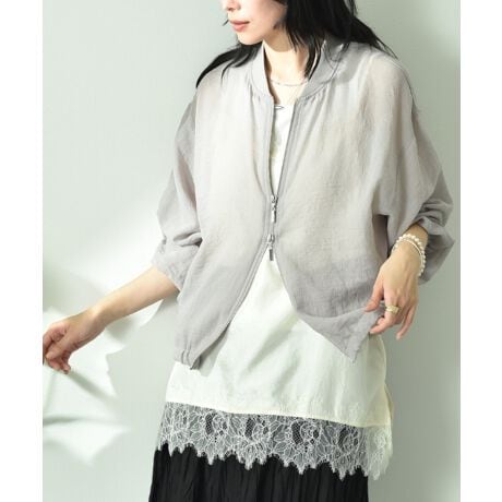 程よい透け感で大人の女性が着まわせるシアーブルゾン。今季トレンドのシアー感で旬なスタイルが完成します。表面のナチュラルなシボ感も魅力です。裾はゴム仕様になっていて、リラックス感もプラス。