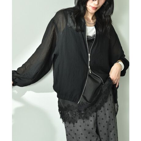 程よい透け感で大人の女性が着まわせるシアーブルゾン。今季トレンドのシアー感で旬なスタイルが完成します。表面のナチュラルなシボ感も魅力です。裾はゴム仕様になっていて、リラックス感もプラス。