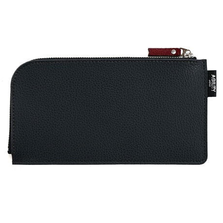 バッグの隙間にスッと収まるフラットな長財布です。表裏でバイカラーを楽しめる、イタリアのダブルフェイスレザーを使用。表は合わせやすいシックな色合い × 裏は気分を上げるビビッドなカラーのコンビ、AGILITY特注の配色です。フラットな作りでお札がきれいに折らずに収まる、L字ファスナー長財布です。より薄く仕上げるために本体は外側から押さえるようにステッチでまとめ、ファスナーも通常よりも細いファスナーを使用しました。中央の小銭入れを仕切りに、刻印側のスペースにはお札が折らずに10枚程度収まります。 反対側のスペースにはレシートなどが入り、壁面側には縦に収まるカードスリットが5枚分ついています。中央仕切りの下部にはカードスリットがついておりカードが3枚程度まとめて入ります。中央仕切り上部は小銭入れで、15枚程度の小銭が収まります。浅めのつくりにすることで、小銭を取り出しやすくデザインしました。