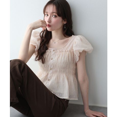 ドット柄がガーリーな印象ながら、大人っぽいディティールを詰め込んだ大人ガーリーなブラウス。