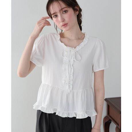 フロントリボンフリルブラウス