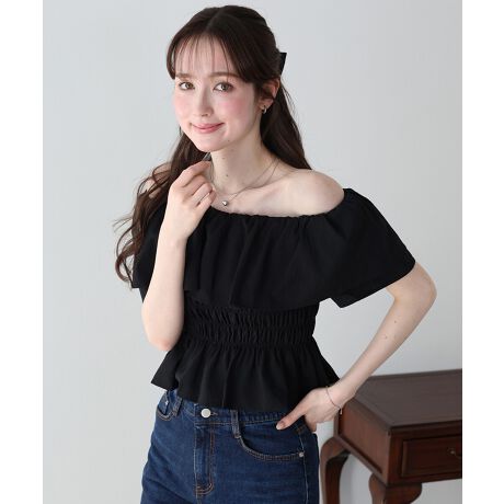 甘さと抜け感を楽しめるフェミニンなオフショルブラウス