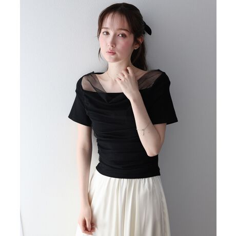 上品な魅力のチュールドッキングドレープカットソー