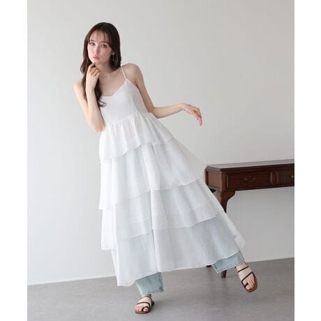 涼しげなシアー生地に、華奢な肩紐でキュートな抜け感を演出してくれるキャミワンピース。