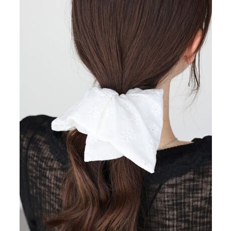 甘すぎない大人可愛いスクエアシルエットのコットンレースを使用したシュシュ。
