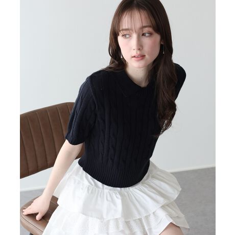 ドッキングデザインがトレンドライクな半袖ニットトップス