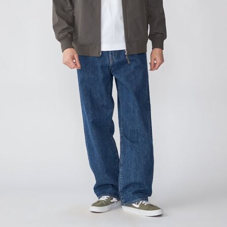 ヒップにゆとりを持たせ、ワタリから裾にかけて太さをキープしたワイド感と、ほど良いジャストレングスが特徴です。