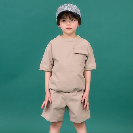 バルーンシルエットのトップスと、サイドポケットがポイントのハーフパンツの2点セット。
