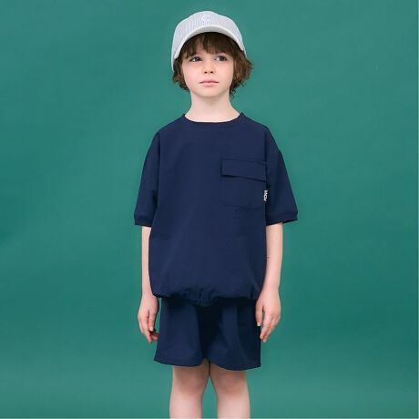 バルーンシルエットのトップスと、サイドポケットがポイントのハーフパンツの2点セット。