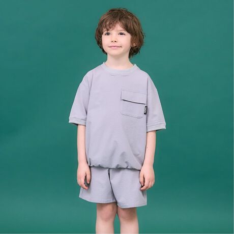 バルーンシルエットのトップスと、サイドポケットがポイントのハーフパンツの2点セット。