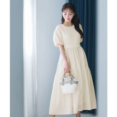 CENEA パフスリーブティアードワンピース