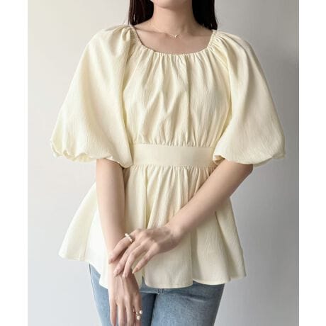 mipiarl パフスリーブペプラムトップス