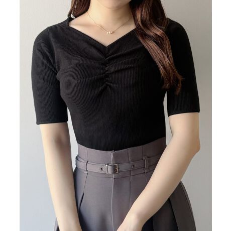 mipiarl フロントギャザー半袖リブニット