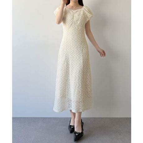 mipiarl カットレースパフスリーブワンピース