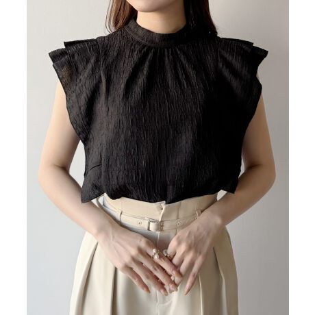 mipiarl  ラッフルジャガードノースリブラウス