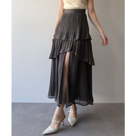 mipiarl スリットプリーツティアードパンツスカート