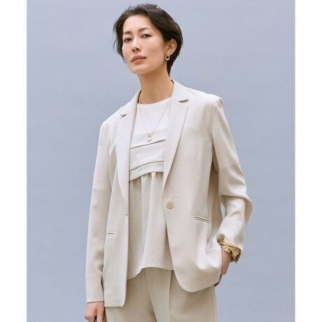 1枚で着映える、大人のためのビスチェ風コンビトップス■デザイン快適な着心地のカットソーと、ブラウスのような上品さを兼ね備えたビスチェのコンビトップスです。 布帛のセットアップで着ることができるジャケット(JKWMLM0411)やパンツ(PRWMLM0411)と同じ素材を使用したビスチェ風のデザインが特徴で、胸元に施されたタックが華やかな印象を与えます。ジャケットを羽織った際も胸元のデザインがアクセントになり、バランスよく着ていただけます。 裾に向かって緩やかに広がるフレアシルエットで、パンツともバランスよく決まります。■素材カットソー部分は、綿特有の光沢感を持つきれいめな素材を使用しており、暑い時期でも快適な着心地です。 ビスチェ部分には、梳毛調のストレッチポリエステルをベースに、オリジナルのスラブ糸を使用したツイル素材を採用しました。ナチュラルワッシャー加工と減量加工を施すことで、ソフトな風合いと程よい落ち感のある、エレガントな素材感に仕上げています。