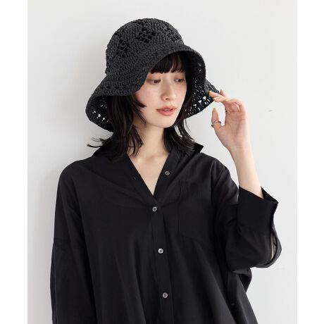軽やかなペーパー素材で仕立てた、透かし編みデザインのハット。