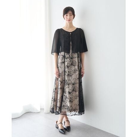 華やかさをまとう、刺繍と透け感のレイヤードドレス