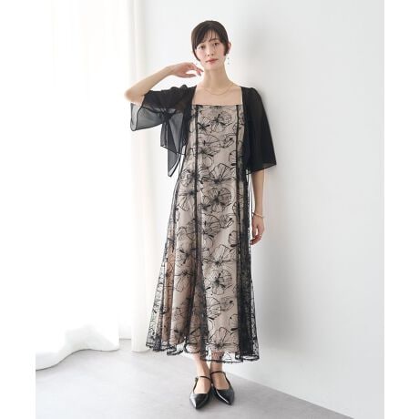 華やかさをまとう、刺繍と透け感のレイヤードドレス