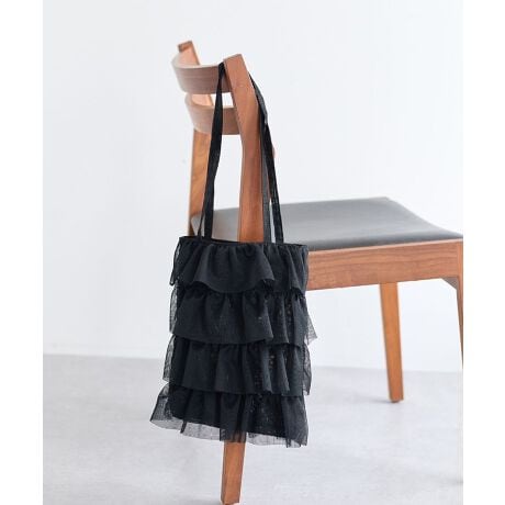 軽やかなメッシュ素材とフリルデザインが印象的なトートバッグ。