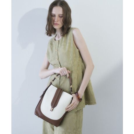 キャンバス調の素材と上品なフェイクレザーを組み合わせた異素材MIXデザインのバッグ。