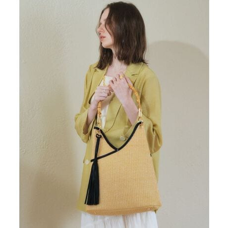 持ち手のバンブー調ハンドルがコーディネートにアクセントをプラスします。