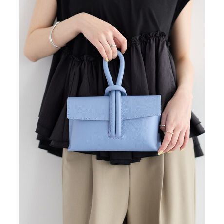 四角いフォルムに印象的なループハンドルがモード感あふれるバッグ。