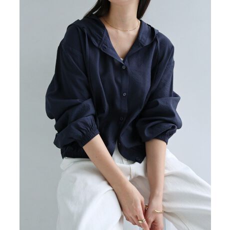 フーディ 長袖 シアー シャツ evernavy エバーネイビー