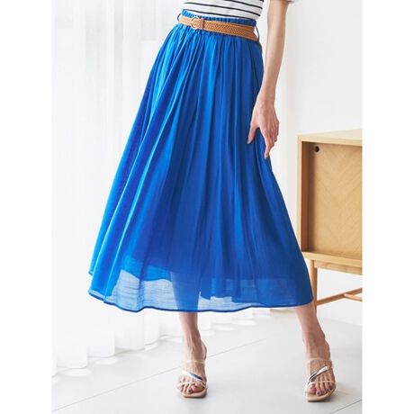 ナチュラルな風合いが魅力のギャザーロングスカート。