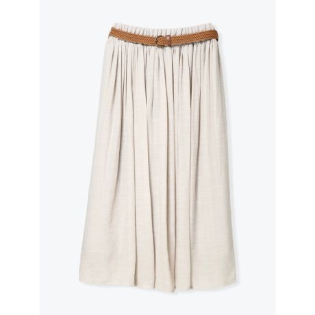 ナチュラルな風合いが魅力のギャザーロングスカート。