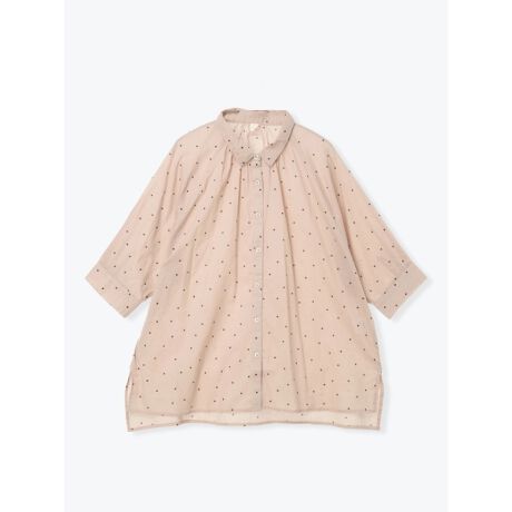 [型番:26410709884]さりげないドット柄がやわらかな雰囲気を引き立てるブラウス。ゆとりのあるシルエットと軽やかな素材感で、リラックスして着られる一枚に仕上げています。前を開けてタンクトップやキャミソールの上に羽織る着こなしや、肌寒い時期は薄手のインナーを重ねて長いシーズン活躍します。Hare no hi/ハレノヒ