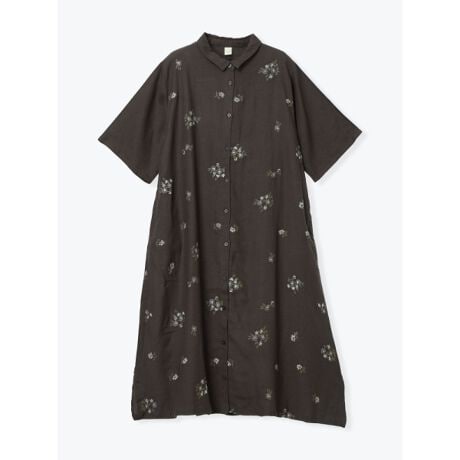 小花刺繍シャツワンピース