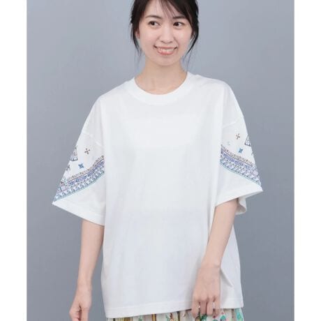 袖部分のカラフルな刺繍に心惹かれる一枚。