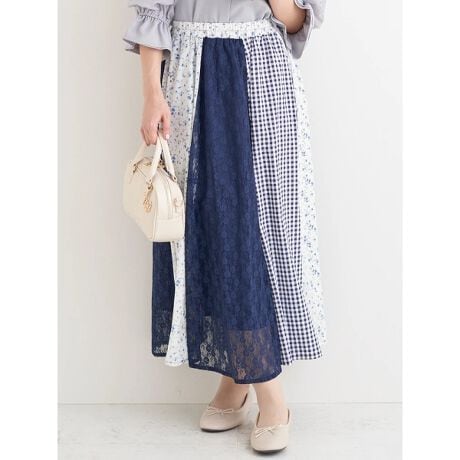 様々な柄や素材をMIXしたデザインが着映えする主役級スカート。