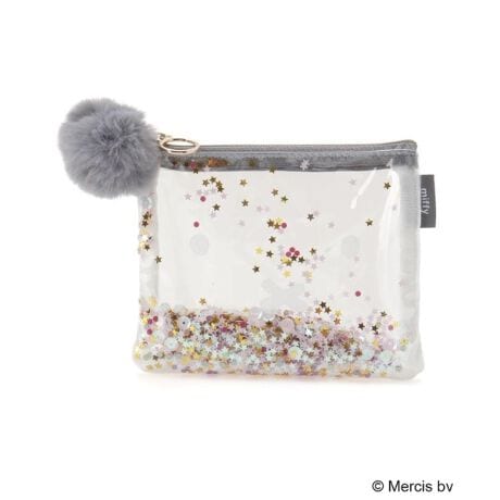 ミッフィーのお顔がプリントされた透明なPVC生地の間に、優しく輝くスパンコールやビーズがシャラシャラと動く、大人かわいいポーチです。