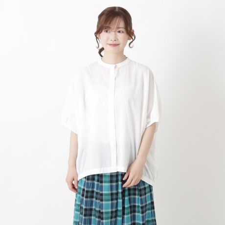 綿素材が涼し気なワイドなシルエットのブラウスです。